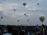 2/12一面の曇り空。朝6時頃現地入りしたそうですが、朝早くからの多い人だかりにビックリ(ざっと見た限りでは5〜6万人)。7時過ぎくらいまでに気球が20機ほど上がって行きます。