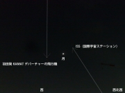 西北西から西へ、月めがけて昇ってきました。同時に羽田発でKAMATOデパーチャーの航空機が月めがけて飛んできました。