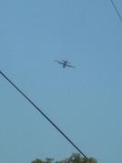 空を見上げると、横田基地RUNWAY36から離陸したC-130がレフトターンして頭上を飛ぶ。