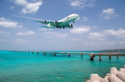 天気が良い日は真っ白なJALカラーがエメラルドグリーンに染まります。