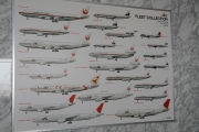 という訳で2月19日の昼、集合場所の新整備場JAL M1ビルへ。入り口で招待状を見せて手続きを行う。やはり20人の中でギリギリ最後の方だったようです(笑)。受付作業後、エレベーターで上階のロビーへ。一際明るいその場所には歴代のコレクションやモデルプレーン、シートが展示されていました。