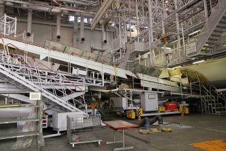 このハンガーはB3とB6の2機のみ。続いて隣のハンガーへ通路を渡って移動します。この通路、3年前にフジテレビでやってたドラマ「アテンションプリーズ」で出てたなあ(笑)久々にドラマ観たくなりました。