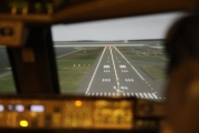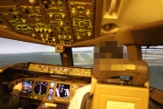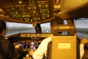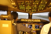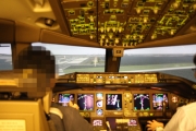 操縦操作は、その都度説明を受けるので全てぶっつけ本番。まずは離陸選択の方がキャプテン席に座りタキシングがらスタート。私はオブザーバーシートから見学撮影。