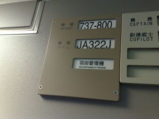 それでは飛行機を見てみましょう。DOCKに入っているのはB737-800(JA322J)明日まで整備の機材です。現在のシップコンディションはジャッキアップ、エレキ(電気)ONで外部電源か繋がっているようです。