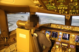 交代して今度は私がFFSのキャプテン席へ。普通自動車と航空無線通信士のライセンスしか持ってませんが、本当にトリプル操縦して構わないんでしょうか?!