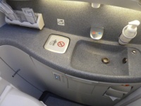 ウォッシュレットはB777新機材と同じですが、こちらは更に流す際に自動で蓋が閉まるタイプ。