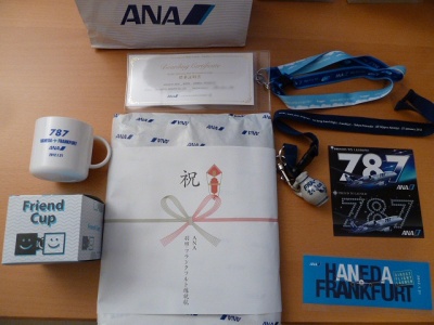 1月21日、ANA B787国際定期便「初便」の羽田発フランクフルト行きNH203へaspheric氏とH氏が搭乗。そのレポが届きました。