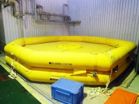 中に入ると、救命ボート(42 MAN LIFE RAFT)やファーストエイドキット、サバイバルユーティリティが。