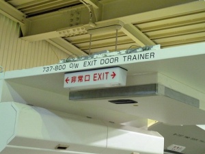 そしてこちらはB777のDOOR TRAINER。ここでトリプルのドア開閉を学びます。