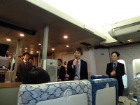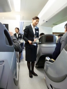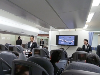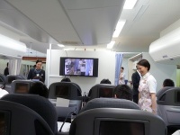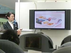 ここでJALの食品開発、WEB担当の方々からの挨拶後、我々にエグゼクティブクラスの客室サービスを体験してもらうとの発表。
