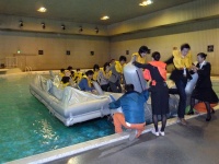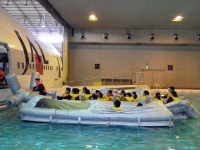 続いて突発海上脱出。着水後、ドアからボートにて避難します。