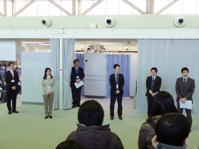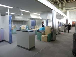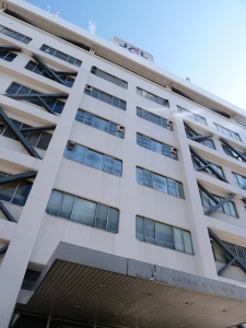 さて、保安要員としてのCAさんの安全への取り組みを学んだ後は、場所を移動して今度はサービス要員としての取り組みを学びたいと思います。場所を訓練センターから機装ビルへ徒歩にて移動。ビル内の客室訓練センターへ向かいます。