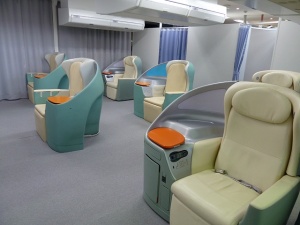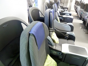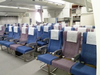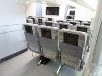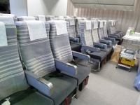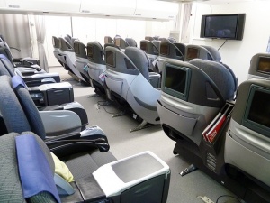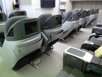 ファーストクラスのSKY SLEAPER SOLOやエグゼクティブクラスのシートが並ぶ。これらのシートはコスト削減の為、退役したB747から持ってきたそうです。今までお疲れ様、お帰り。謎の感動(笑)。