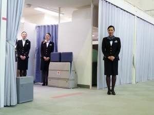 CAさんの訓練期間1から2ヶ月のうち救難訓練は8日間、各機材の形式訓練もあり、定期救難訓練も一年に一回あるとの事。ちなみに乗務を半年以上休んだ場合は復帰訓練もあるそうです。