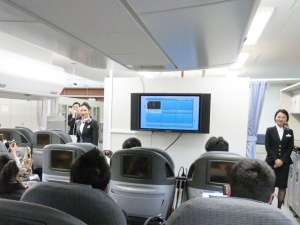 ここで本日のJALスタッフの方々から自己紹介。CAさんは訓練教官でもあります。
