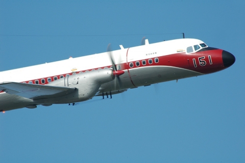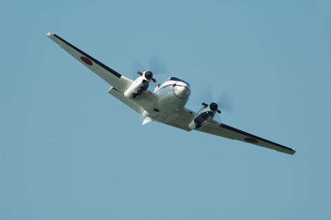 航空自衛隊YS-11、翼をフリフリしながら帰投。