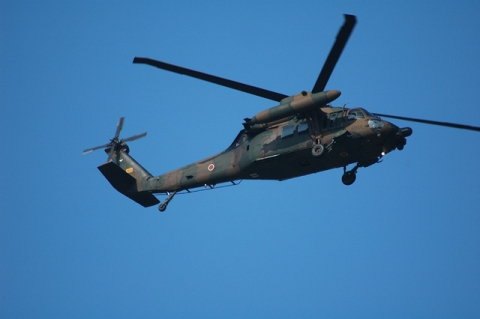 海上自衛隊SH-60K、滑走路横の我々上空をかすめるサービスして帰投。