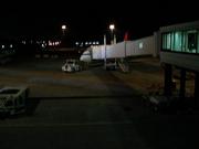 羽田到着前、雲の中で景色は見えず。天候は雨だそうです。降下して雲の切れ間から見なれない景色。23時過ぎてるし、どうやら▲KAIHO経由の「FMSローカライザー34Rアプローチ」のようです。左に旋回しLLZに会合。雨の羽田34Rに着陸。