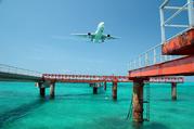 エメラルドグリーンの海と真っ赤な誘導灯、真っ青な空の中を、エメラルドグリーンに染まった航空機が低空で突っ込んでくる、そんな場所。