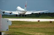 轟音と共に我々の頭上を超えて、この巨体を滑走路中央へ持って行く。御見事。